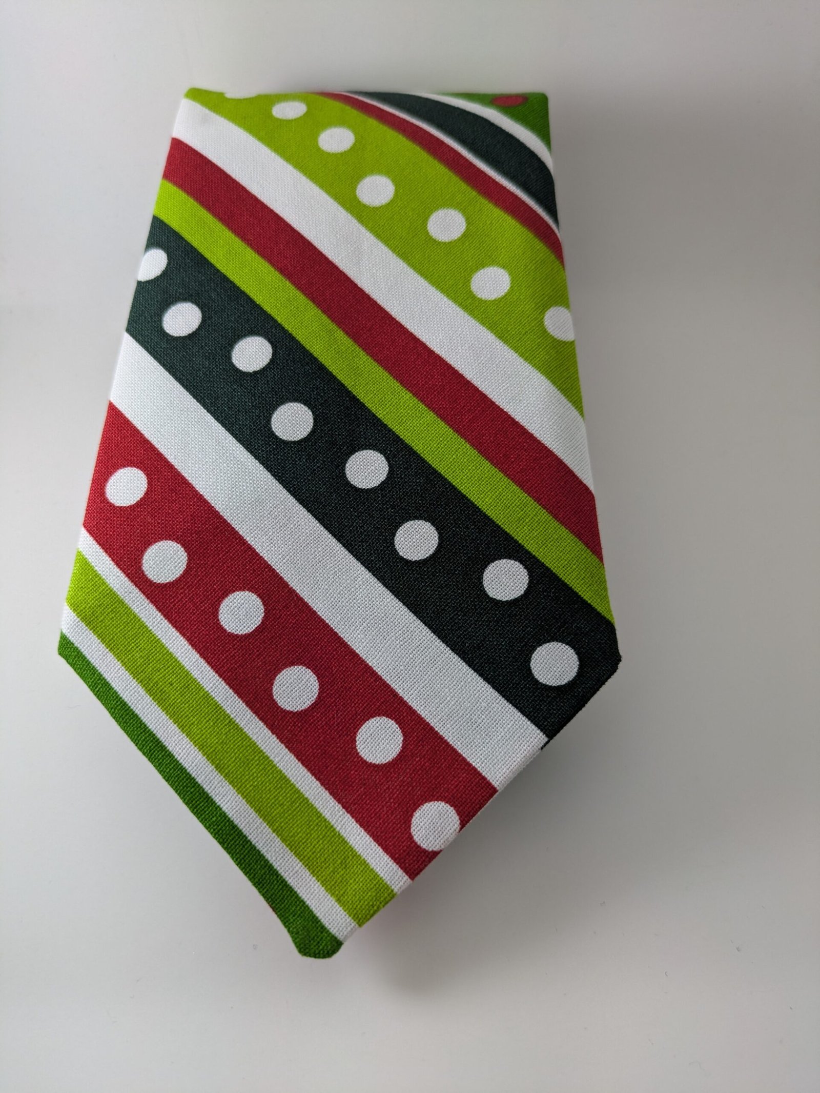 Lively Christmas print with dots and stripes. 100% cotton.